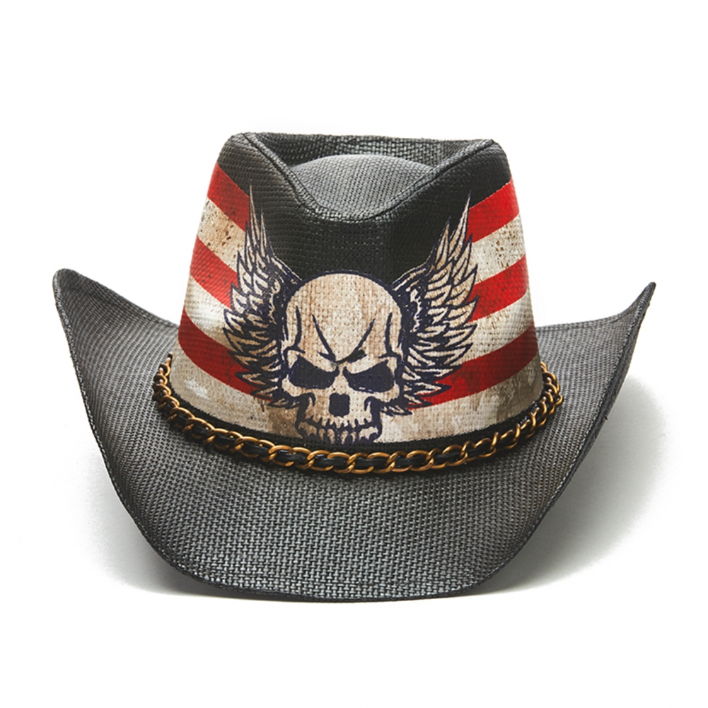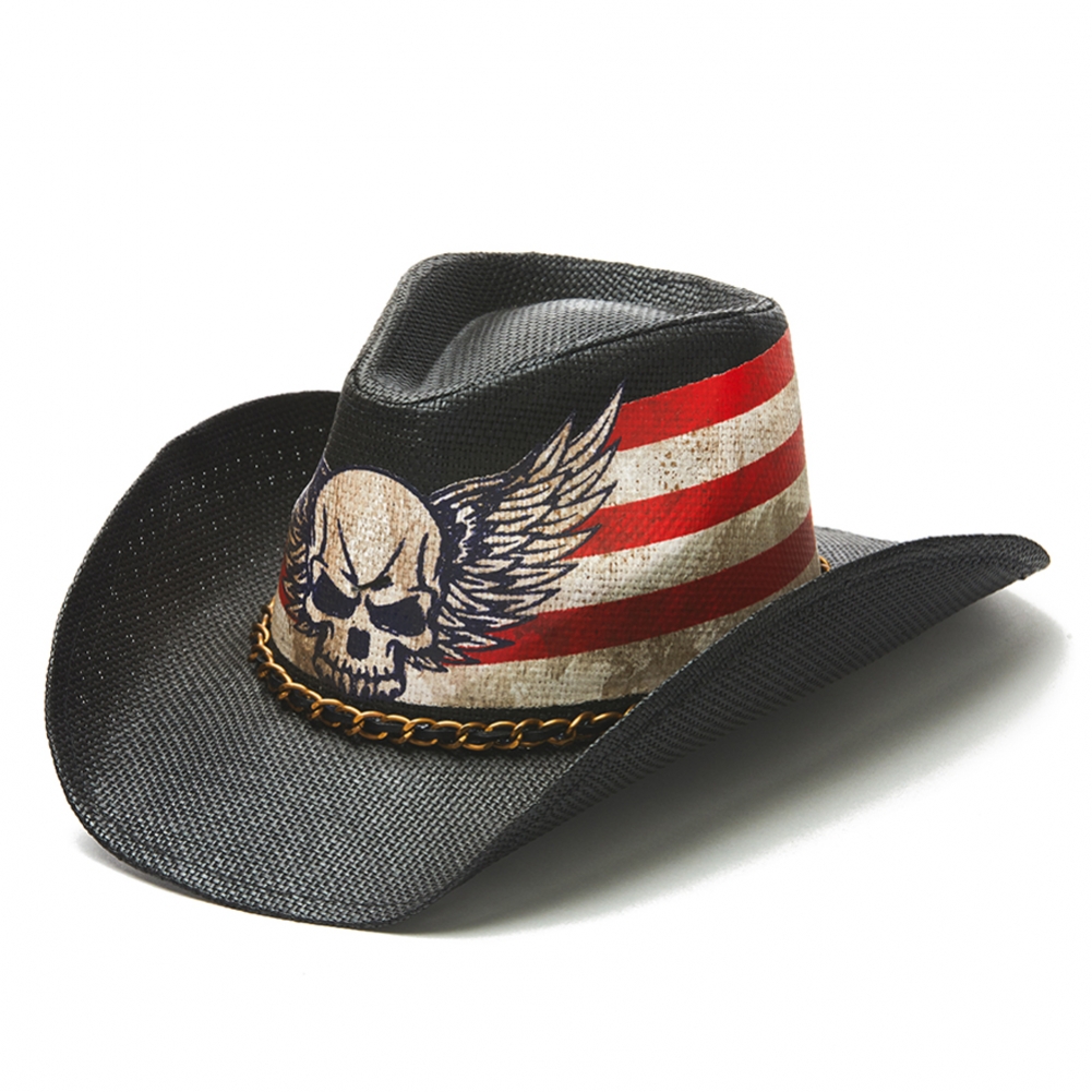 TOYO STRAW BLACK SKULL WESTERN HAT
